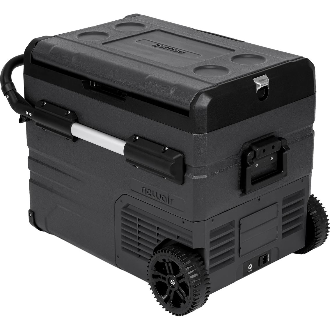 The Newair Portable 48 qt. Electric Cooler with LG Compressor Fridge and Freezer is a portable unit that lets you bring all the food you need for trips into the wilderness. It’s weather-stripped reversible doors, retractable handle and adventure-grade wheels let you bring it anywhere, while the 80-qt. capacity ensures you can feed the whole family.