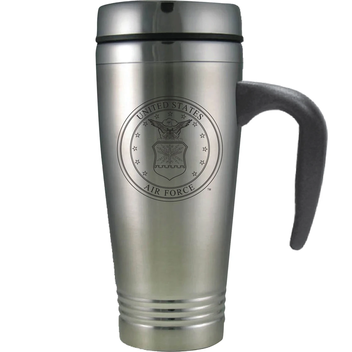 This Air Force Hap Arnold Stainless Steel Double-Wall Vacuum Insulated Travel Mug with Lid and Handle holds 16 oz. of your favorite beverage. It pays homage to the first General of the Air Force.